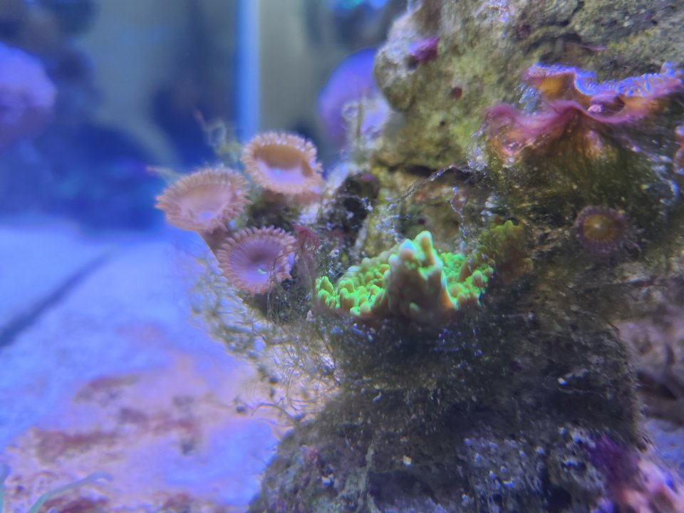 Startee feeding heavy to try and get my wrasse to eat. Algae is mot likely red cyano (which i tried to suction up) and bryiopsis.
