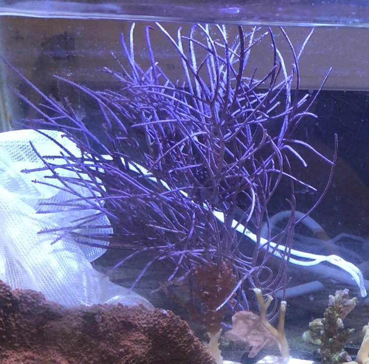 I read before the best way to frag is cut a branch, drill a little hole into rock, strip a bit of flesh like stripping copper wire, then glue the skeleton bit into the hole. Yours is huge though! Adds a very natural look to the tank. When I snorkeled in the keys earlier this year, the gorgonians were everywhere among the corals and lots of fish used them as hiding spots.