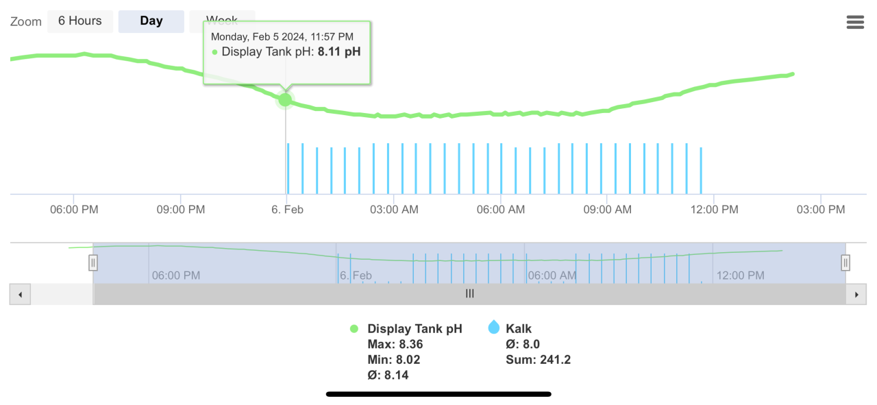 In the chart you can see the daily change is getting smaller with the last 2 days having only a .2 change going between roughly 8.1 and 8.3. Now I'm curious to see how the tank responds to a more consistent pH.
