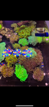suffering from success with all those torchesTorch racks getting fullStill a few more I want to get. More of the brighter yellows and greens. I’ve been waiting on a 24K torch from an LFS that I traded my Red Sea Max E-170 setup to but at this point I think I got scammed and not getting it… so will be on the lookout for one lol