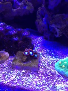 Picked up a nice purple blasto and a cleaner shrimp from a LFS (which I shall not name for now due to the story I'm about to tell). At the store, the blasto looked great but the cleaner shrimp seemed a little low energy. I looked around and saw a few dead ones and the rest were also lackluster. Well when I took the little guy home, temp/drip acclimated and put him in the tank... he keeled over within the hour. So I msged the owner and thankfully, he was kind enough to offer a replacement. I asked if I could just exchange it for something of equal value and picked up a colt coral instead. I also picked up a green rhodactis. It was supposed to have orange streaks but seems to have gone away for now. It is oddly sort of heart shaped. (apologies for the terrible shot of the colt). Edit: Forgot to include the Pink Clove Polyps that I got as well.