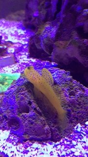 Side story about Eggsy.... one evening, my 3yr old was watching me feed the fish and I complained out loud that "Eggsy, is not eating". And without missing a beat, she responds "Daddy, that's because he is a watchman goby, so he just likes to watch". LOLMeet "Eggsy", the Yellow Watchman Goby who marches by the beat of his own drum...