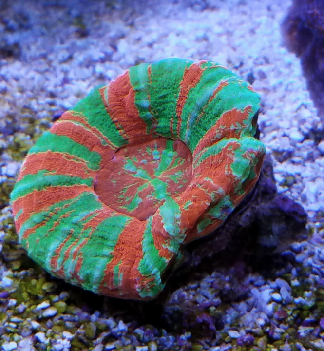 Pink Floyd on the top and the BC Bubblebath Unicorn on the bottom. The unicorn likes to put down a massive base and has been slowly encroaching up to the PF. As you can see the PF has mesenterials out ready for the war. I hope they can find a medium somewhere where they don't overgrow each other. Otherwise, it's gonna be pulling that rock out and then cut down the borders and replanting them.