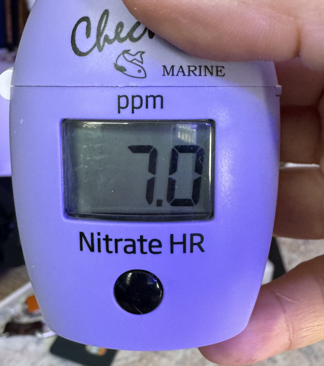 - I've done 3 or 4 water changes to bring nitrates down. Salifert is reading about 20 now where the Trident is reading 50-70 (depends on the day).