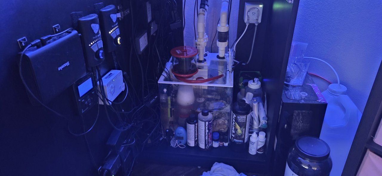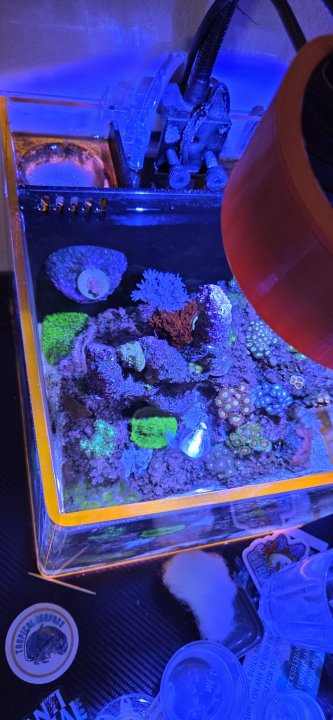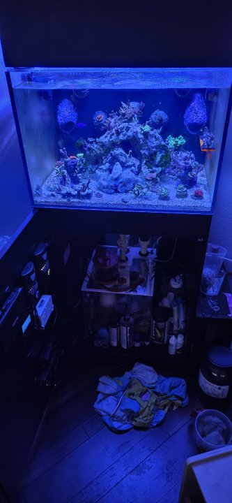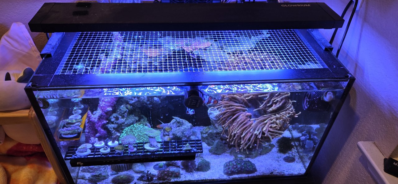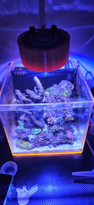 I am a relatively new reefer, around 2.5 years! And suffering from MTS. Currently running a 32g Fiji Cube EXT SPS dominant system as my main display. Innovative marine 20 AIO for my high end nem and random frags, Innovative Marine 15 AIO for soft coral, macroalgae, and a mangrove, and Deskmate 4.8 for a zoa garden and some other random coral.