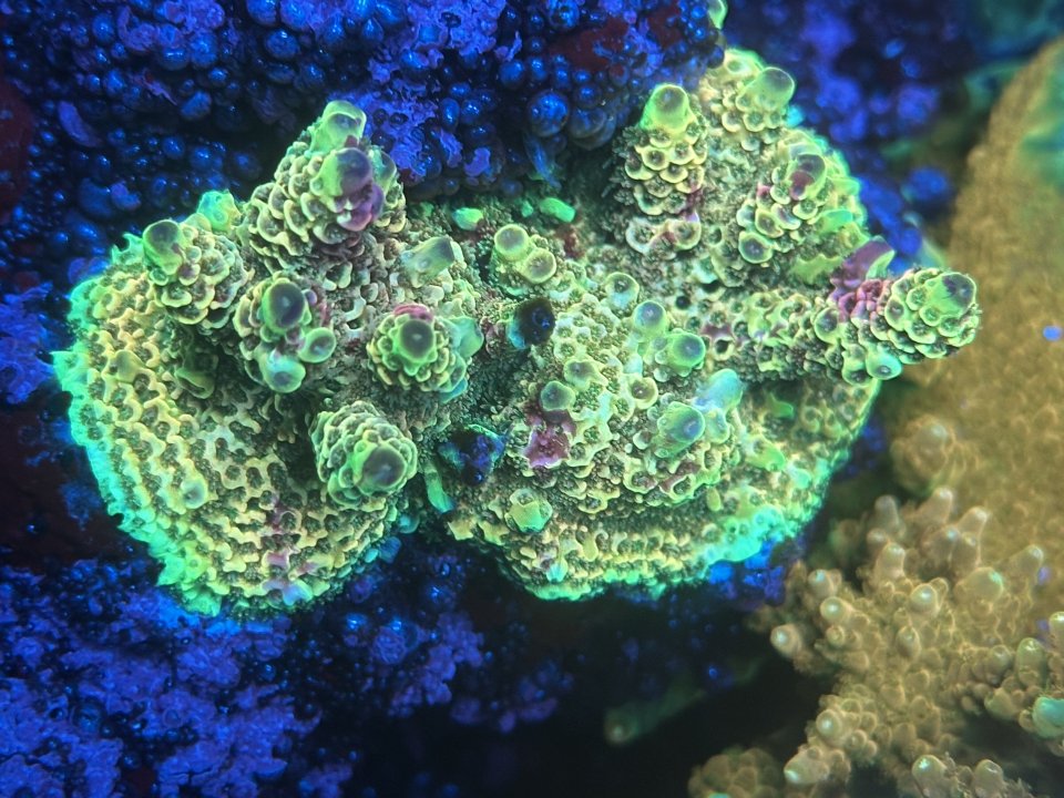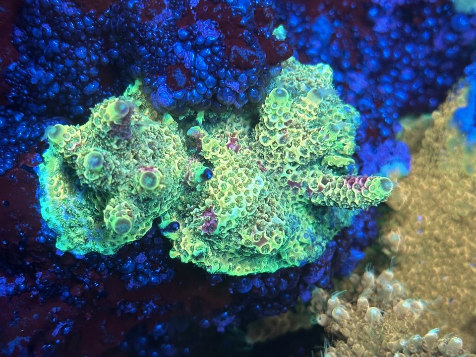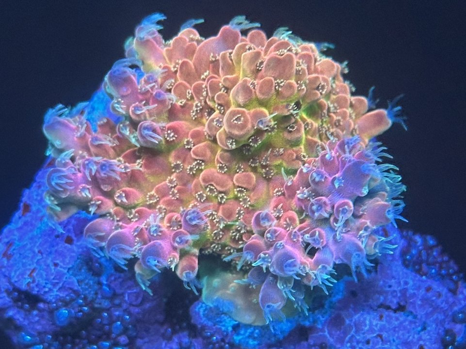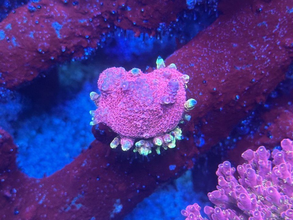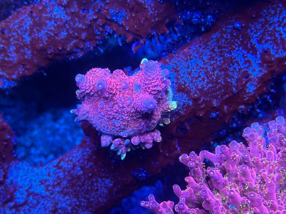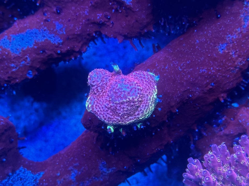 I see a number of people got the a POTO Flamethrower from Thirstyreef in that group buy. (@derek_SR, @Krak256 & @Invictus) I got one from him last Jan 2024 and thought some might be interested in how it’s done over the last 13-14 months. It actually sat on a frag plug on the rack for a while (6-8ish months) before I put it on the rock structure, but it looks like it’s encrusting on the rock now.