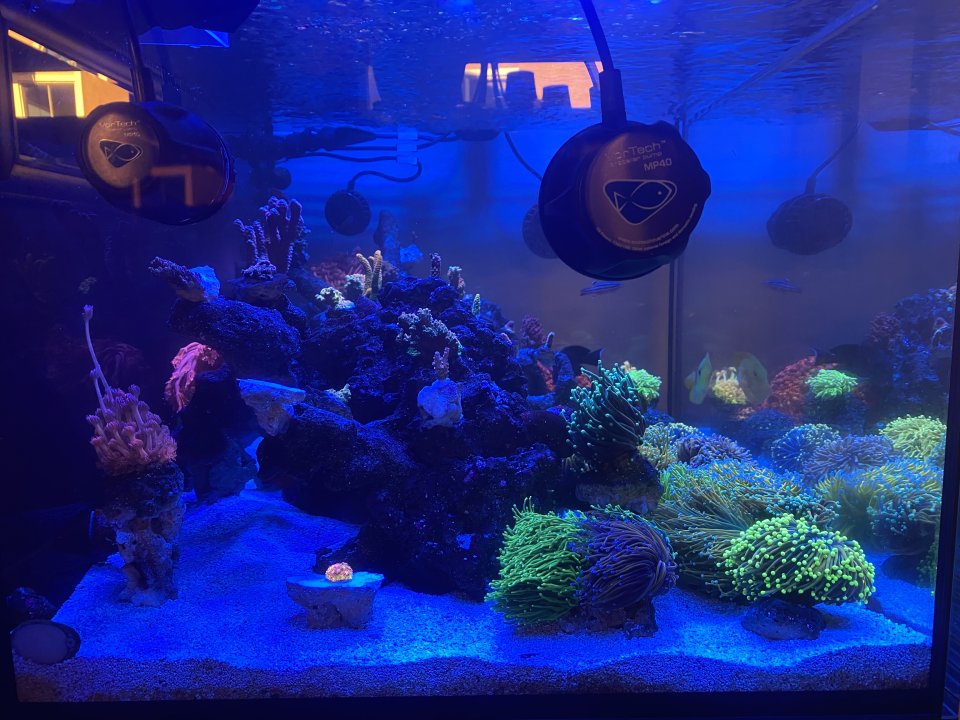 Day 91 progress update on the tank. I took down the tunze nano pump I had in there because I hate wires in the tank and added two mp10s I had laying around in the garage. So now I’m running two mp40s and 2 mp10s. Yes, I know, a lot of flow!