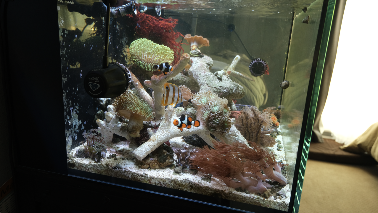 Maintenance: Change Water whenever I remember, Test every few months (Nitrate + Phosphate), No ATO setup, No controllers. No Skimmer