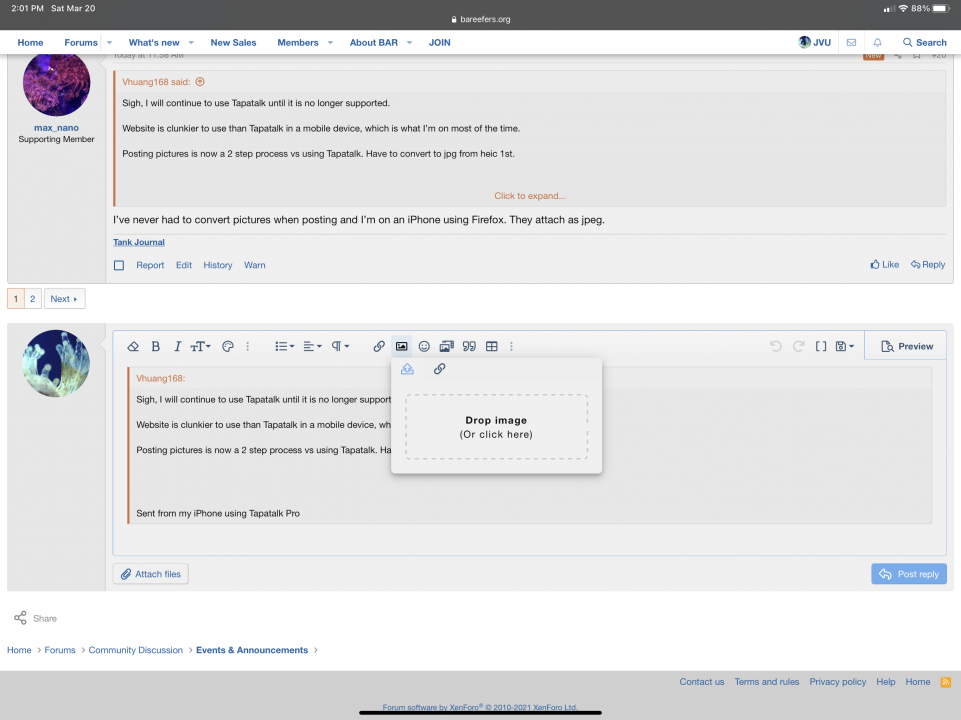Posting pictures is now a 2 step process vs using Tapatalk. Have to convert to jpg from heic 1st.