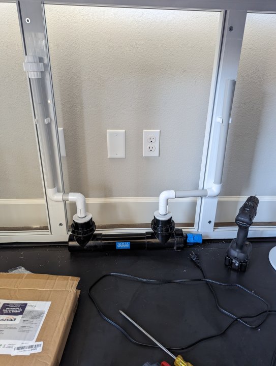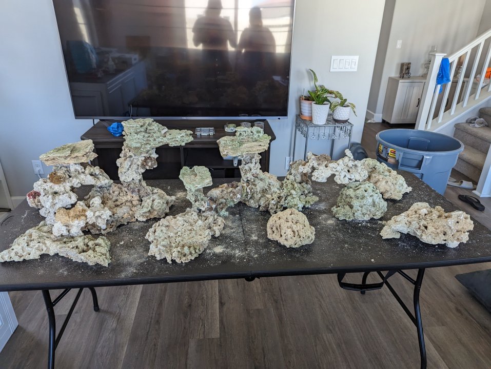 God bless competent new construction + perfectly level floors on a concrete slab. Checked it multiple ways, because I'm *super* paranoid after my Red Sea's near-failure, and it's bang-on level in every way.