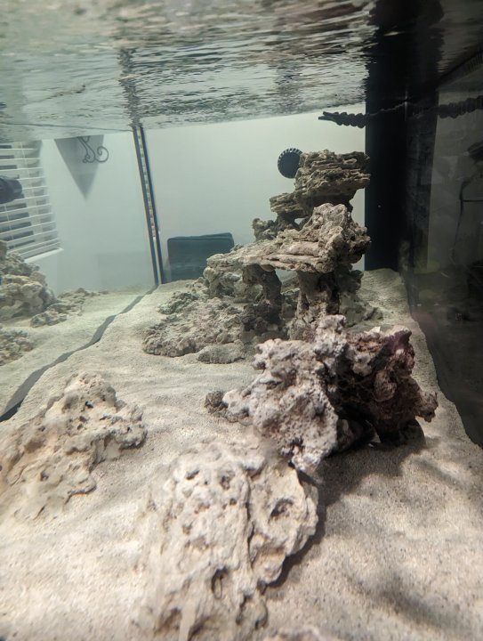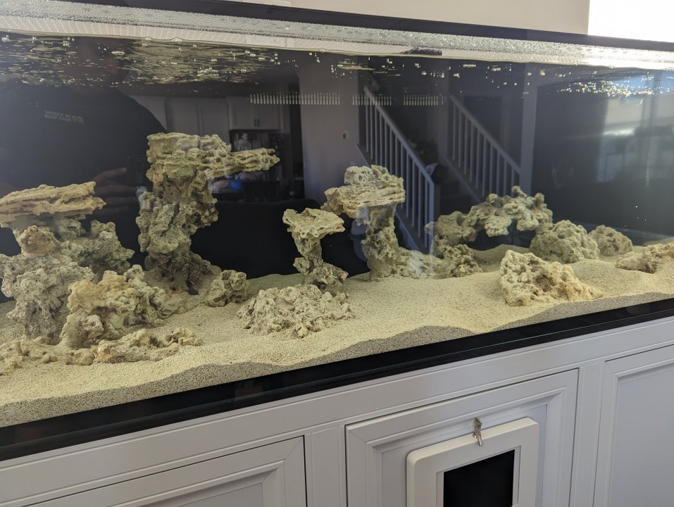EDIT: Also, forgot to put this information earlier, but - in spite of ordering 160 lbs of special grade CaribSea Arag-Alive sand - we only used 120 lbs.