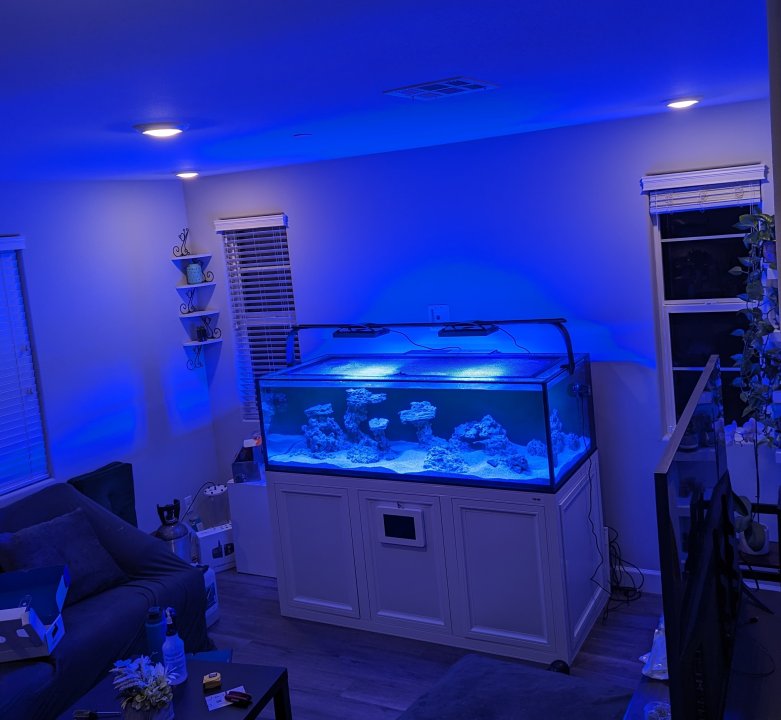Touching on earlier conversation with @Darkxerox regarding oxygen exchange: I'm fortunate that both my wife and I like the sound of bubbling/running water, so I've had both sets of return nozzles pointed right at the surface (with an MP40 providing additional agitation). Also, given I'm not running filter socks yet, I've gotten additional agitation and gas exchange from the water running through the filter sock holes.