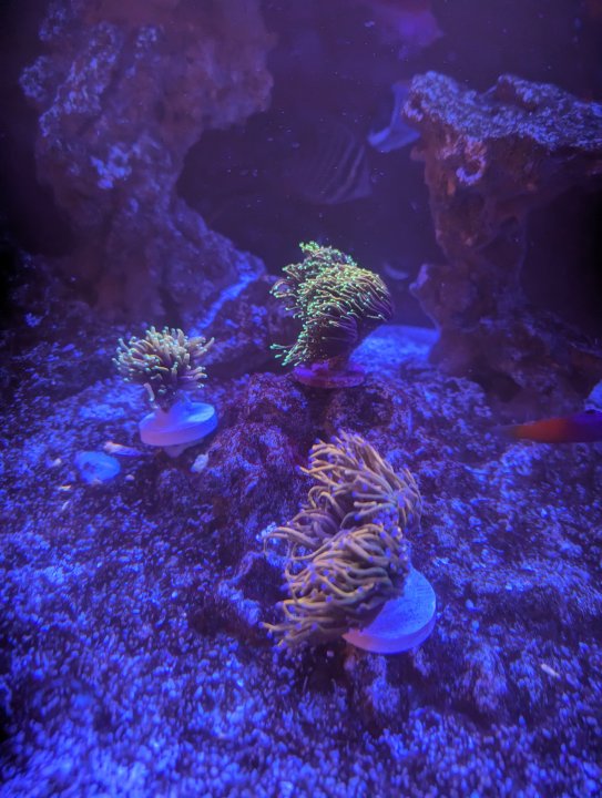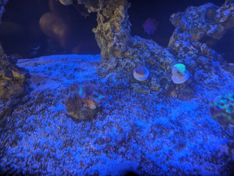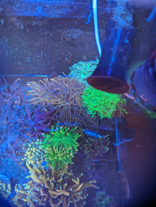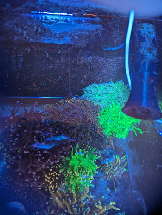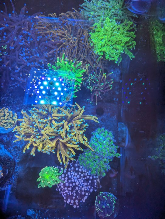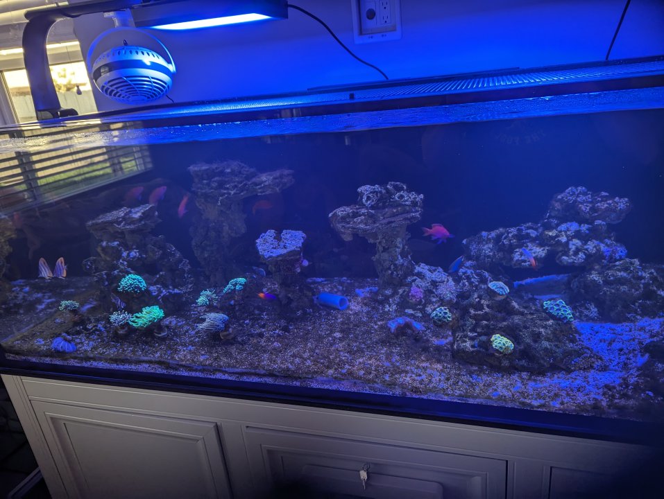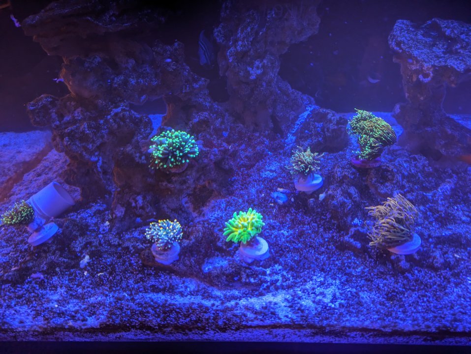 Everything I picked up from the frag swap - including @thephoreefer 's torches and some gorgeous chalices from @Invictus - will be done with QT and ready to add a week from tomorrow. Two weeks from tomorrow, everything from CFM goes in. Then, hopefully in November, we'll have our bella goby, mandarin pair, and porcupine puffer to complete the fish list. For now, though - algae aside - the tank looks happy!