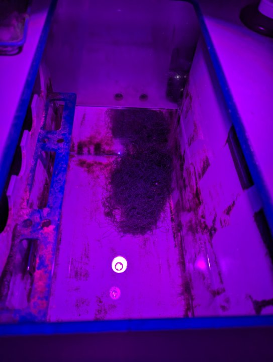 Hair algae choked out the little bit of chaeto I added a few months ago, also, so I went ahead and got some clean chaeto, scrubbed out all the hair algae from the fuge, and added a larger quantity of chaeto this time.