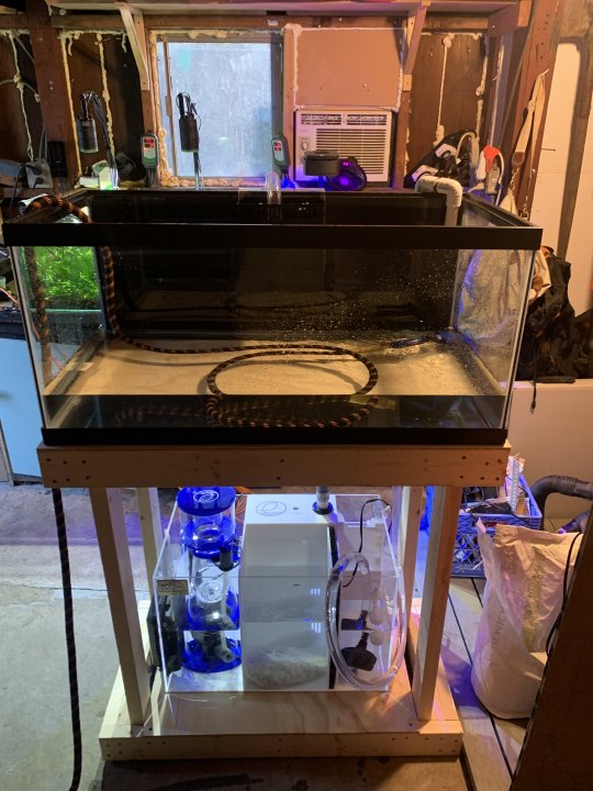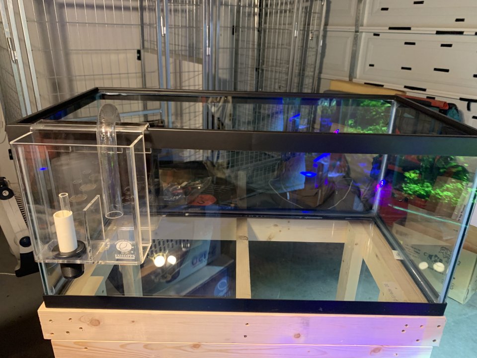 The system holds roughly 55 gallons of water total and should be getting some saltwater in it over the weekend.
