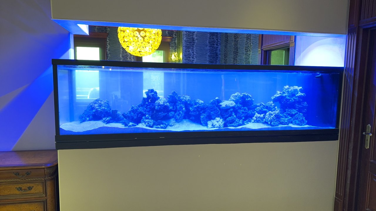 Not the final rock work, but coming along! Coral should start to go in in about a week. Lighting wise running 10 A360s. Still waiting on all the cabinetry and wanescoating. Will eventually be enclosed on the top and bottom so the only way to see between the rooms is through the tank.