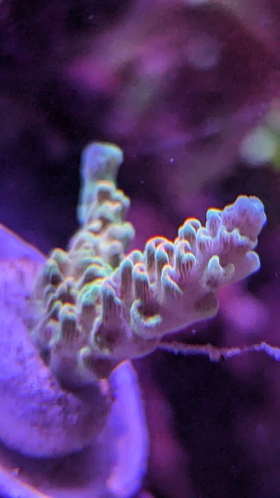 Not yet, just got back from a two week vacation. Lost the WWC wilsoni that wasn't happy before I left but everything else looks great. The new Manila Spy and Palmer's blue millepora from Reefbum survived and got burnt a bit from my lighting, but are recovering. Same thing happened when I got the Oregon tort from @JVU but that's since adapted.