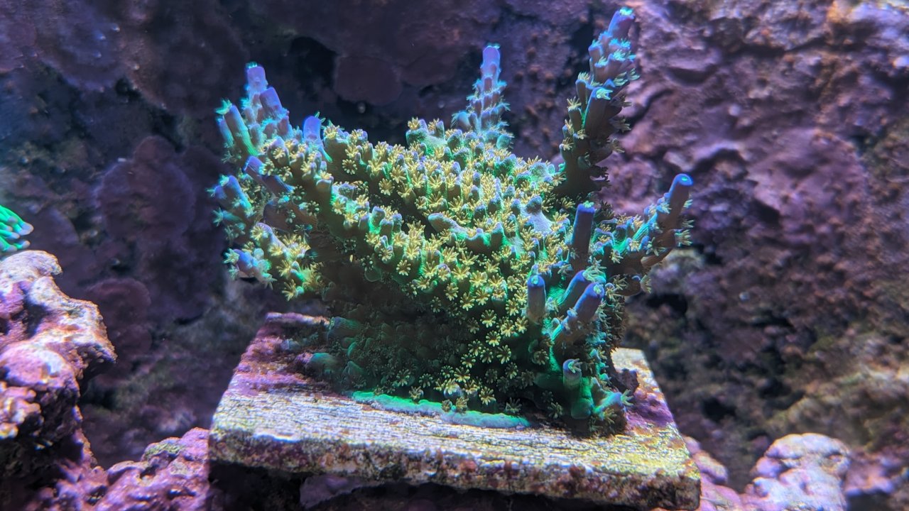 Recovery shot of @under_water_ninja 's Wilsoni finally starting to pick up some symbiodinium in its right half: