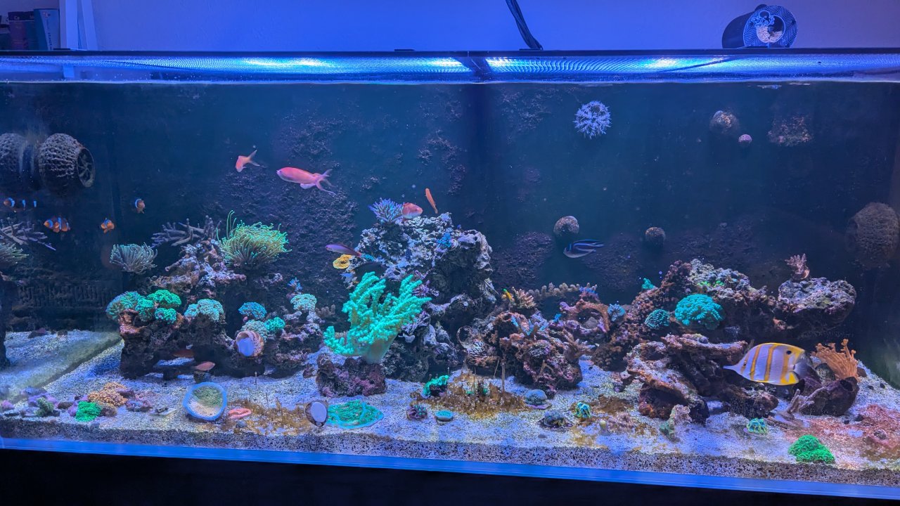 Plan is to order some ammonium carbonate or potassium nitrate as well and figure out a dosing strategy. Feeding 7x a day even with 16 fish isn't enough. I've got the butterfly and tang growing up in the nano and three more anthias on the way.