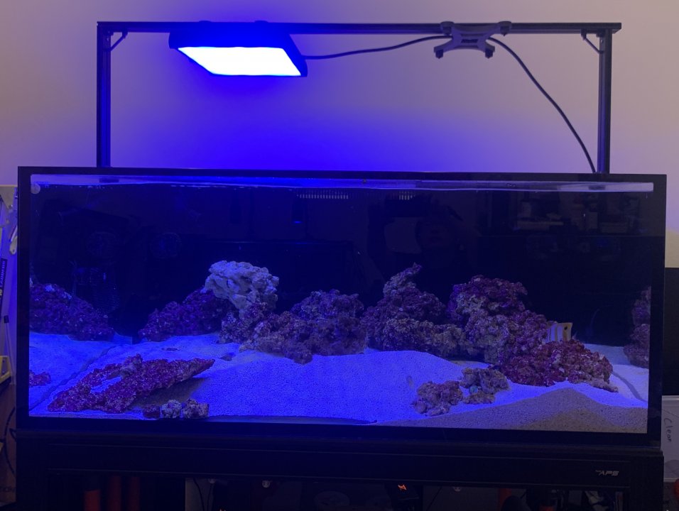 I'll be cutting the legs to lower the rail so the lights are about 8-9" off the water. And also cutting the little extra rail on the right side to make it flush. Tank is a little under 48", its metric.
