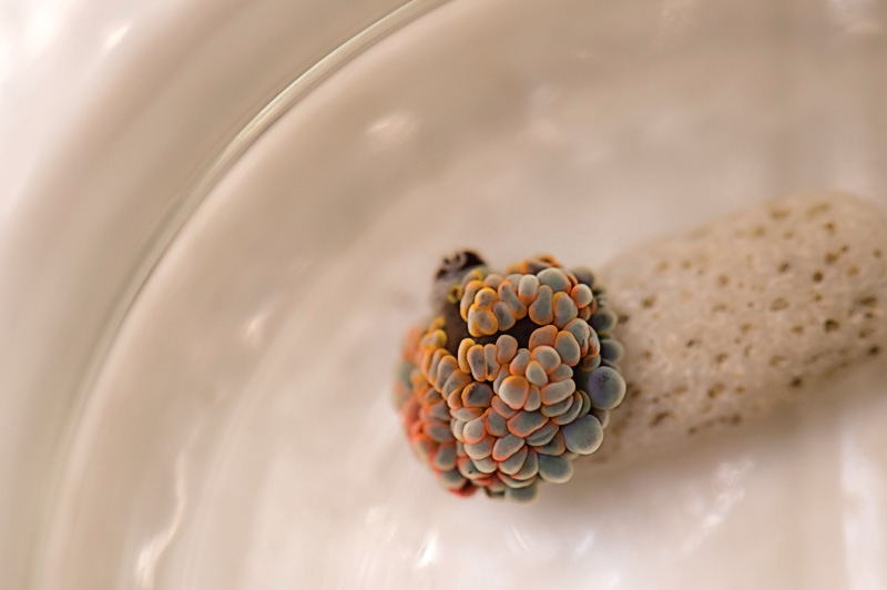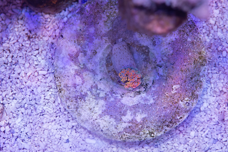 Neptune tenuis #7. Nice and plump tissues. Hard to tell, but it's encrusting underneath and to the right. It's slowly losing the blues and picking up greens instead so it'll be interesting to see what it ends up looking like.